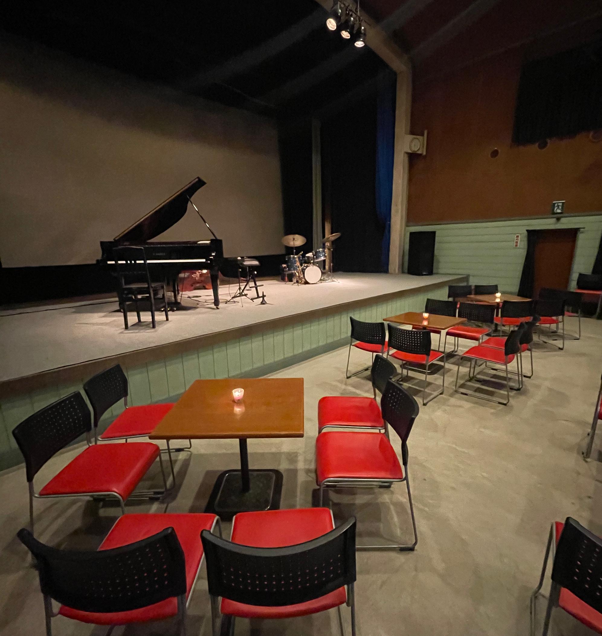 一戸での体験は全く違いました。シンプルな食事と飲み物を楽しみながら、生の楽器の音をダイレクトに感じる。映画館として誕生した萬代館は、結果的にこのようなジャズイベントに理想的な空間となり、まるでジャズのために設計されたかのような響きを持っていました。